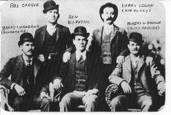 "The Wild Bunch" Butch Cassidy and the Sundance Kid Photo taken at Fort Worth, Tecas around 1900. After buying new derbies, the boys decided to have their photos taken as a joke. Thet stopped by the Fort Worth studio of john Swartz at 705 Main St. This photo ultimately lead to the downfall of the gang. |