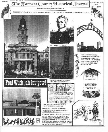 Editor and Send all letters, notes, correspondence, clippings, complaints, photographs, subscriptions, requests, press releases, hot tips, hate mail,junk mail, important information, invites, payola, gifts, confessions, cash, checks, and orders to: The Tarrant County Historical Journal P.O. Box 311, Springtown, TX 76082