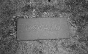 At Rose Hill Cemetery on East Lancaster St., turn right on Rosehill Dr. Go to Church St. Turn right into Rosehill Cemetery. turn right at the first road. Go down to the Shannon Mausoleum in the circle. Drive around the circle and back the way you came and stop about 50 ft. from the circle. The grave is to your left. Oswald's headstone is about 40 ft. from the road. The stone is purple. It reads "OSWALD". |