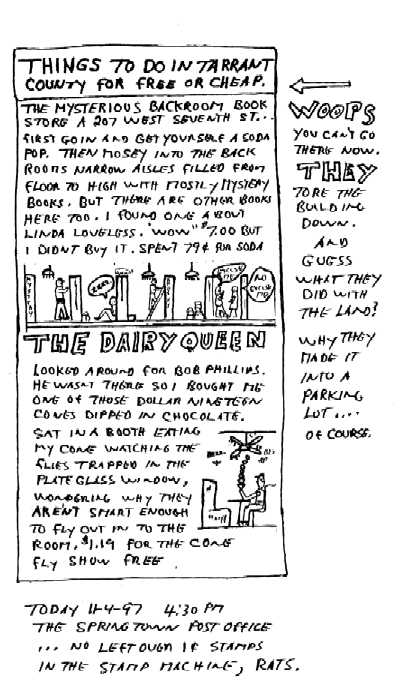 Daisy Emery Allen was the County's first female doctor. She practiced here from 1913 until 1958. George Anderson was fired on Feb. 21, 1887 for slugging a woman in a saloon on Main Street. He said she was his wife. Ruth Brown was the first white woman to settle in North East Tarrant County in 1849. She had with her, nine orphaned children. Noel Burton owned the first liquor store in 1856. He called it "The First and Last Saloon". |