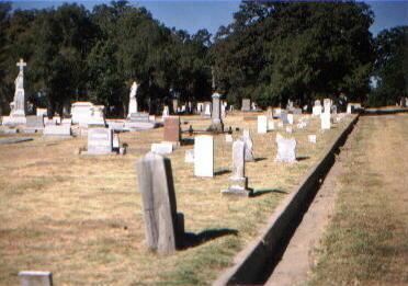 ![]() Trinity Cemetery - "Black Section" - The tall Obelisk in the background is a monument to "Gooseneck Bill" McDonald, a Negro banker and politician. Some of his family are buried here, but he is not. |