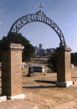 Calvary Section - A Burial Plot For Catholics There were no bridges across the Trinity River in early Fort Worth. All the Catholic funerals were held downtown at the St. Patrick's Cathedral. The funeral procession had to cross the river at shallow fords. Sometimes the water was high and the horses and mourners could or would not cross. There was a saying among the early day Catholics - "He is a good friend, he will follow you all the way across the river." |