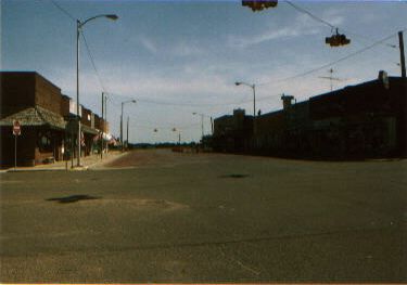 This is downtown McLean on Saturday evening about 3:00 pm. In the street in the background are some orange barrels.