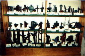 This picture was taken inside the Devil's Rope Museum. This display is of hydraulic jacks. Each