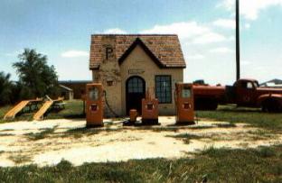 The "66" Super Service Station smack dab in what usta be downtown Alanreed. This restored gas station