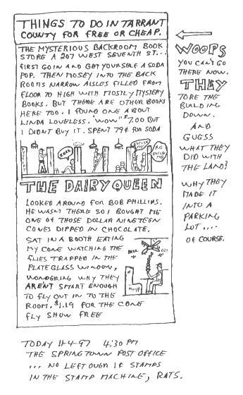 THE VAGABOND JOURNAL - A various and sundries collection of sketches, stories and photographs about life as I see it during my wanderings and exploration in this thing we call life. Unusual circumstances and sometimes down right weird, it's all contained within these 80 pages. What you see below is just a sample. |